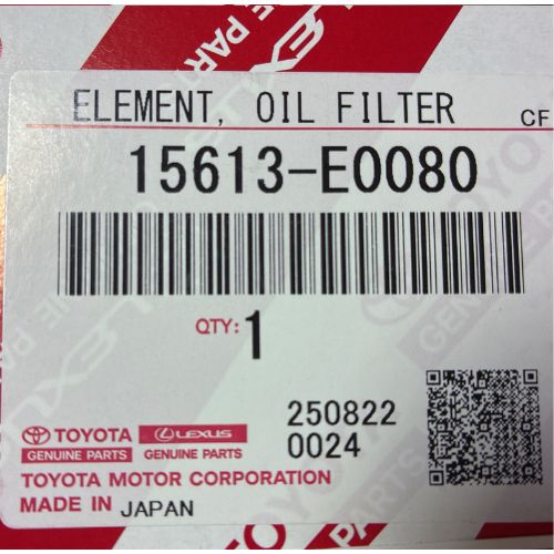 Keep your engine running at peak performance with the Genuine Toyota Oil Filter 15613-E0080, a premium OEM component designed for superior filtration and long-lasting protection. Engineered specifically for Toyota vehicles, this oil filter effectively removes contaminants, dirt, and metal particles from engine oil, ensuring smooth lubrication and enhanced engine efficiency.